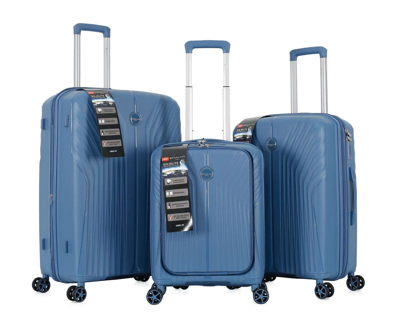 RONCATO EDGE PRO is a sleek, lightweight suitcase designed for modern travelers. Featuring durable 4 polypropylene wheels for smooth mobility, it includes an anti-theft zipper with an integrated lock for enhanced security. The expandable interior offers versatile packing space, complemented by a dedicated liquid bag for organized storage. This suitcase combines practicality and style for effortless travel.